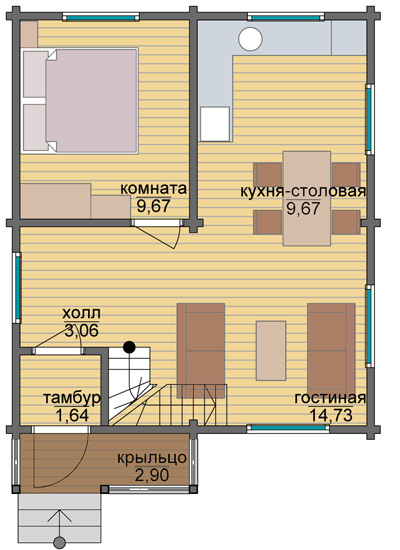 Дом 63 кв.м. Двухэтажный деревянный дом из клееного профилированного бруса, второй этаж мансардный. ![]() ![]() Общая площадь 63 кв.м.