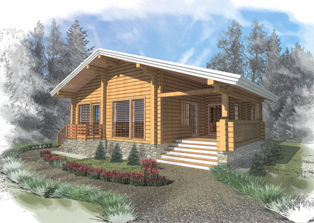Одноэтажный деревянный дом из клееного профилированного бруса.