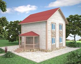 Деревянный дом размером 6 на 8 метров, высота первого этажа 2,5 метра, высота второго этада 2,3 метра.
